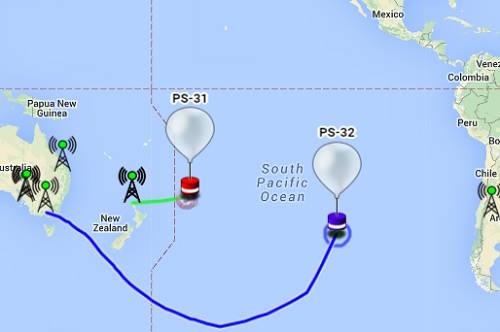 Meantime PS-32, launched from Woori Yallock 56 km east of Melbourne three days later, continues to track south-east to by-pass New Zealand on a polar route across the dateline in the Southern Ocean, before traveling around Cape Horn in South America.
