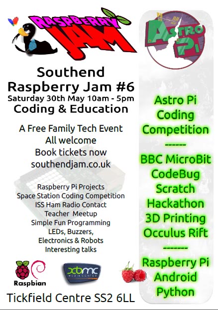 The free Southend Raspberry Jam #6 event on May 30 will feature amateur radio and the International Space Station (ISS).