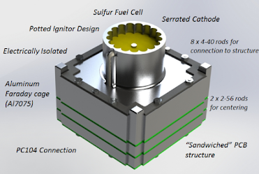The Pulsed Plasma thruster will use tungsten electrodes and a sulfur propellant.