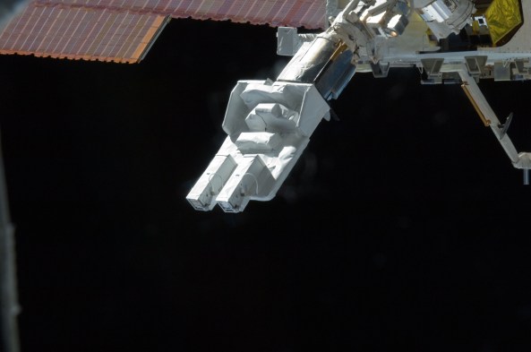 The cargo vessel arrived at the ISS on July 27 and the ISS Canadarm2 robotic arm was used to install the HTV-3 to its docking port on the Earth-facing side of the Harmony module at 1434 UT. The CubeSats were then unloaded by the Expedition 32 crew
