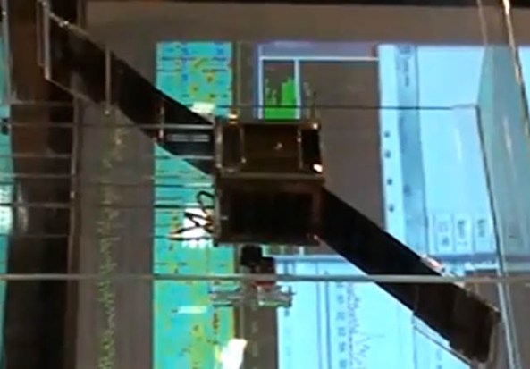 The raw aluminum structure of the CubeSat was donated by Professor Bob Twiggs KE6QMD. After launch the 10 by 10 by 10 cm NEE-01 Pegasus will deploy its 75 cm fold-out solar panels, the largest to be flown on a CubeSat.