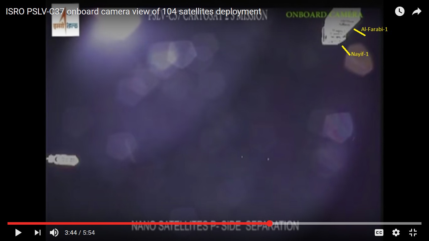 The Indian Space Agency ISRO successfully launched the amateur radio satellite Nayif-1 along with 103 other satellites, a record for a single launch. The PSLV-C37 lifted off from the Satish Dhawan Space Centre, Sriharikota, Andhra Pradesh at 03:58 UT on Wednesday, February 15, 2017.