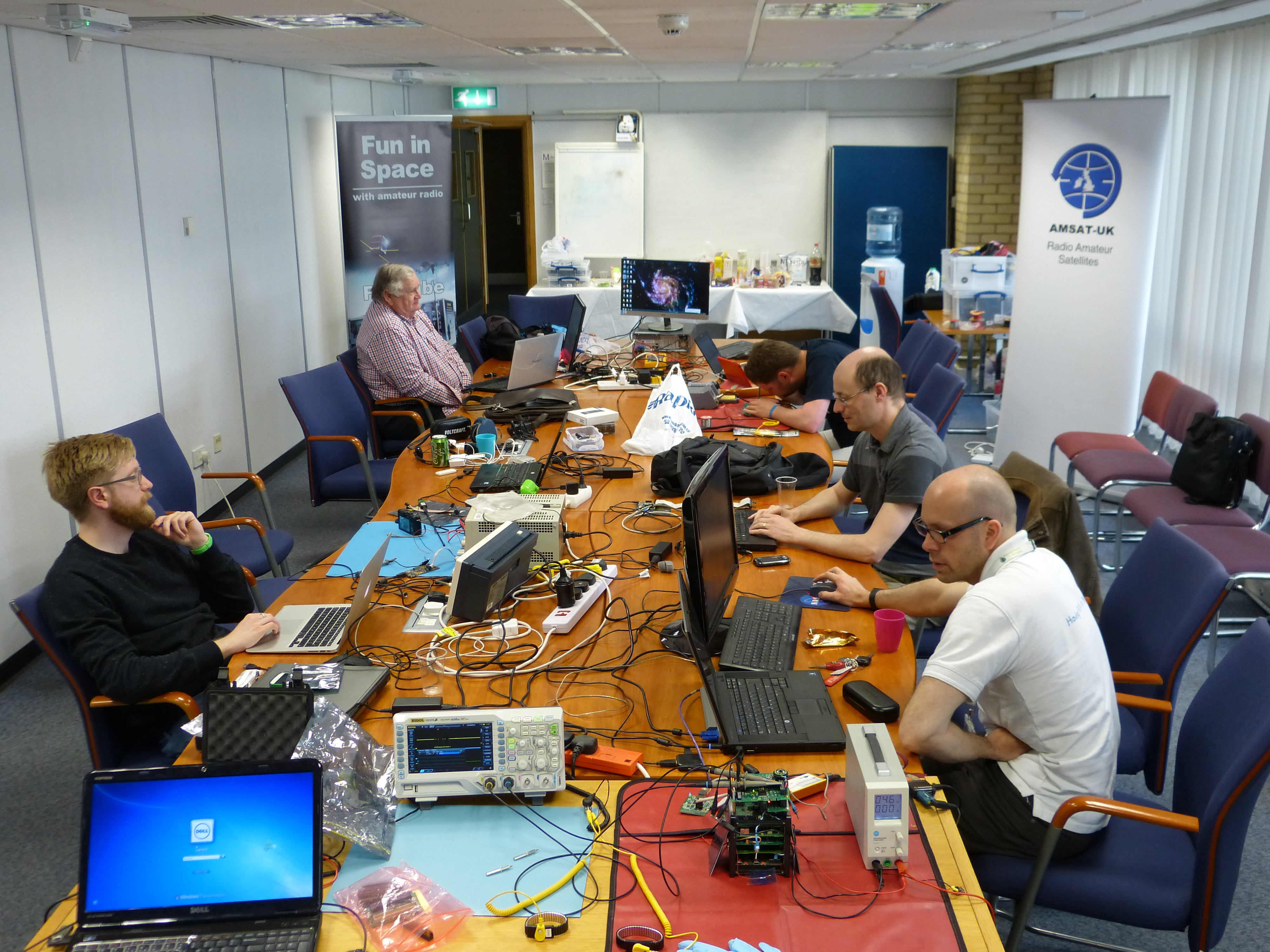 As will be more fully reported in the next edition of the “OSCAR News”, the work concentrated on updating the suite of existing FUNcube software for the forthcoming Nayif-1 spacecraft and also the first power on for the combined CCT/EPS (computer and power) board for ESEO with its ATMEL AT32 microprocessor.