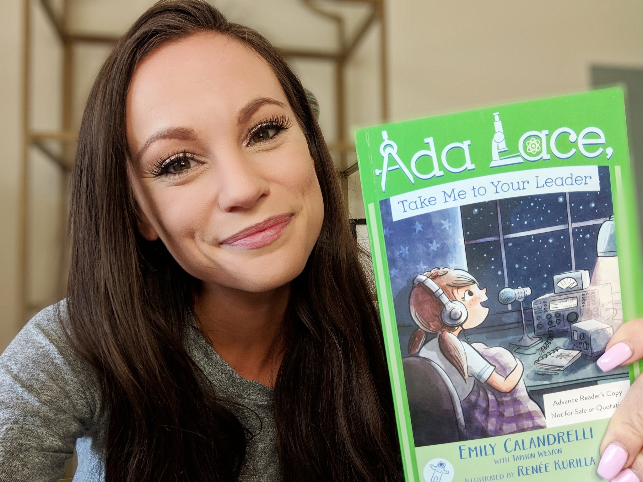 Emily Calandrelli KD8PKR with her new Ada Lace book